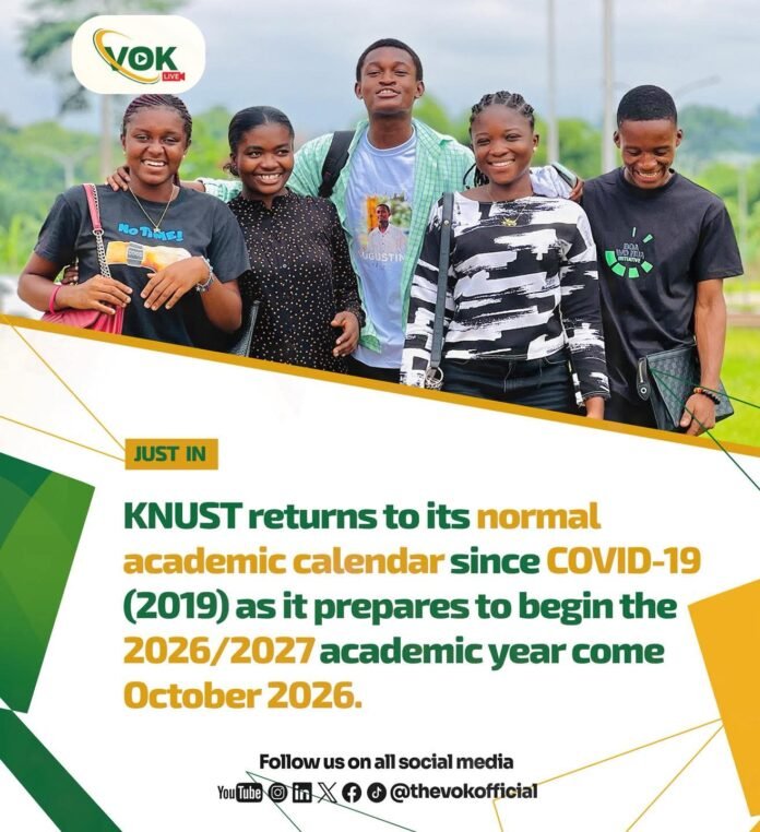 The (KNUST) is set to resume its traditional academic calendar beginning with the 2026/2027 academic year, marking a full return to the October start date that characterised the university’s schedule before the global COVID-19 disruption.