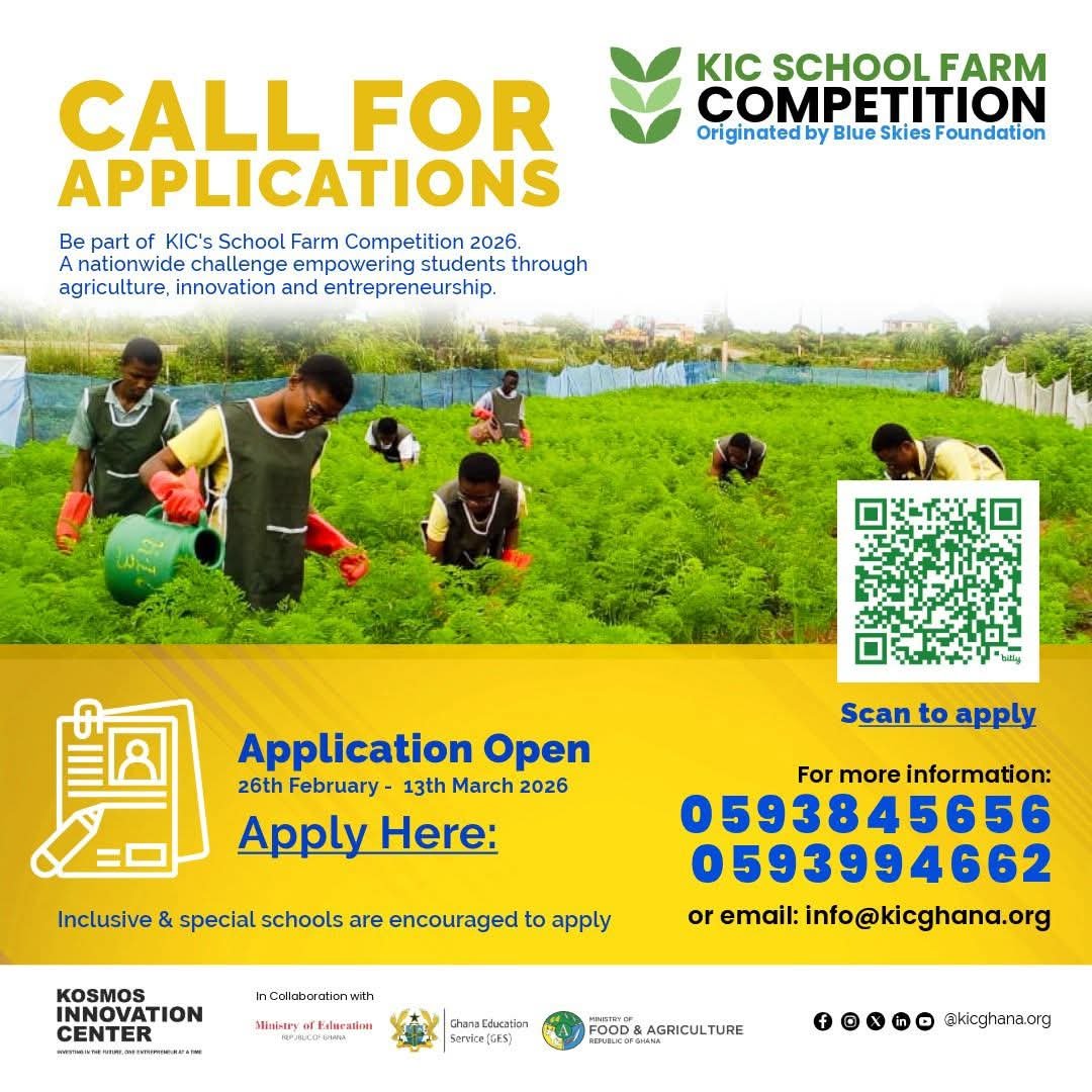 The (KIC) has opened applications for the 2026 edition of its annual School Farm Competition, inviting Junior High Schools (JHS) and Senior High Schools (SHS) across Ghana to participate.
